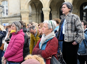 „Ich brauche eine Pause“, „Wie viele Stunden habe ich heute schon gearbeitet?“, oder auch „Warum hört dieser Lärm nie auf?“ … waren nur einige der verzweifelten Aussagen, die am Dienstag während der Mittagsstunde über Lautsprecher auf der place d’Armes zu hören waren. Das als Teil einer symbolischen Veranstaltung, mit der den mehr als 1.100 Menschen (die meisten davon Frauen) gedacht wurde, die am 24. April 2013 bei dem Einsturz der Textilfabrik Rana Plaza in Bangladesch ihr Leben ließen.