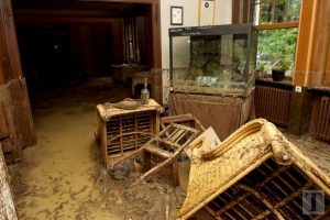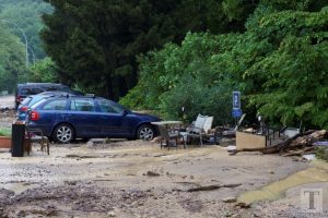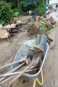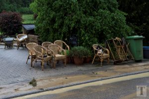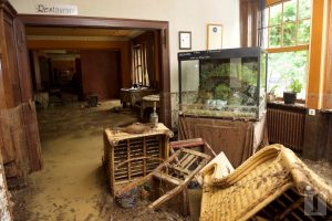 Wann das Hotel seine Türen wieder öffnen kann, ist noch unklar. Seit Tagen laufen Heizgeräte, um die Feuchtigkeit aus den Mauern zu bekommen. Vor dem Hotel steht ein großes Schild mit der Aufschrift „Fermé“. „Und trotzdem haben wir regelmäßig Touristen, die bei uns vorbeischauen und fragen, ob sie das WC benutzen können. Die Toiletten wurden aber alle durch den Schlamm und die Wassermassen zerstört“, erläutert Rita.
