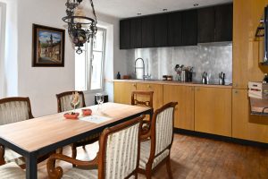 Auch in der Küche hat man das Antike mit dem Modernen verbunden. Die Schränke erstrahlen zum Teil in einem hellen Gelbton, einer Farbe, die auf Basis von Maispigmenten hergestellt wurde. Egal, welchen Raum der Besucher betritt, sei es der „Salon“, die Schlafzimmer oder das Bad, er kommt aus dem Staunen nicht mehr heraus.