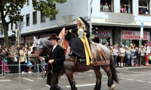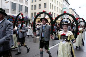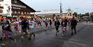 Die meisten Besucher kamen allerdings in Tracht – wobei hier die Grenzen verwischen. Damen in knappen Lederhosen waren ebenso unterwegs wie Herren im Dirndl. Englischsprachige Besucher kamen in froschgrünen Bundhosen, andere in Anzügen mit weiß-blauer Raute.