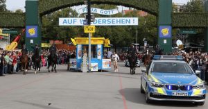 Am Samstag hatte Oberbürgermeister Dieter Reiter (SPD) die Wiesn eröffnet. Erstmals war beim Anzapfen Ministerpräsident Markus Söder (CSU) als Regierungschef dabei. „Hätte fast von mir sein können“, kommentierte er Reiters erfolgreiche Anzapftechnik. Dem Oberbürgermeister beim Anzapfen zuzusehen sei „staatspolitische Aufgabe“ – auch wenn die Wiesn politikfreie Zone sei. Der Wahlkampf in Bayern, der Söder derzeit von Termin zu Termin treibt, spiele hier keine Rolle. Kurz stellt er aber doch klar, worum es am 14. Oktober im Freistaat gehe: Ob Bayern stark und ein Musterland bleibe – „oder werden wir normal wie alle anderen Länder?“.