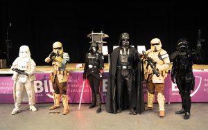 Zu den Highlights aus dem Programm gehörte der „Literature Slam“ am Samstag. Bei diesem Wettbewerb mussten zehn Autoren des Fantasy- und Science-Fiction-Genres in exakt vier Minuten mit einer Lesung aus einem ihrer Werke um die Gunst der Zuhörer ringen. Der junge Luxemburger Autor Jean François erntete den lautesten Beifall und erhielt somit dank seines energischen und selbstbewussten Vortrags einer Passage aus seinem aktuellen Roman „Vulture City“ den Siegerpokal. Das Buch versetzt den Leser in ein dystopisches Universum, das von einer Gedanken kontrollierenden Supermacht beherrscht wird, deren Widerständler mithilfe einer Droge Zuflucht in einer geheimen Stadt suchen müssen.