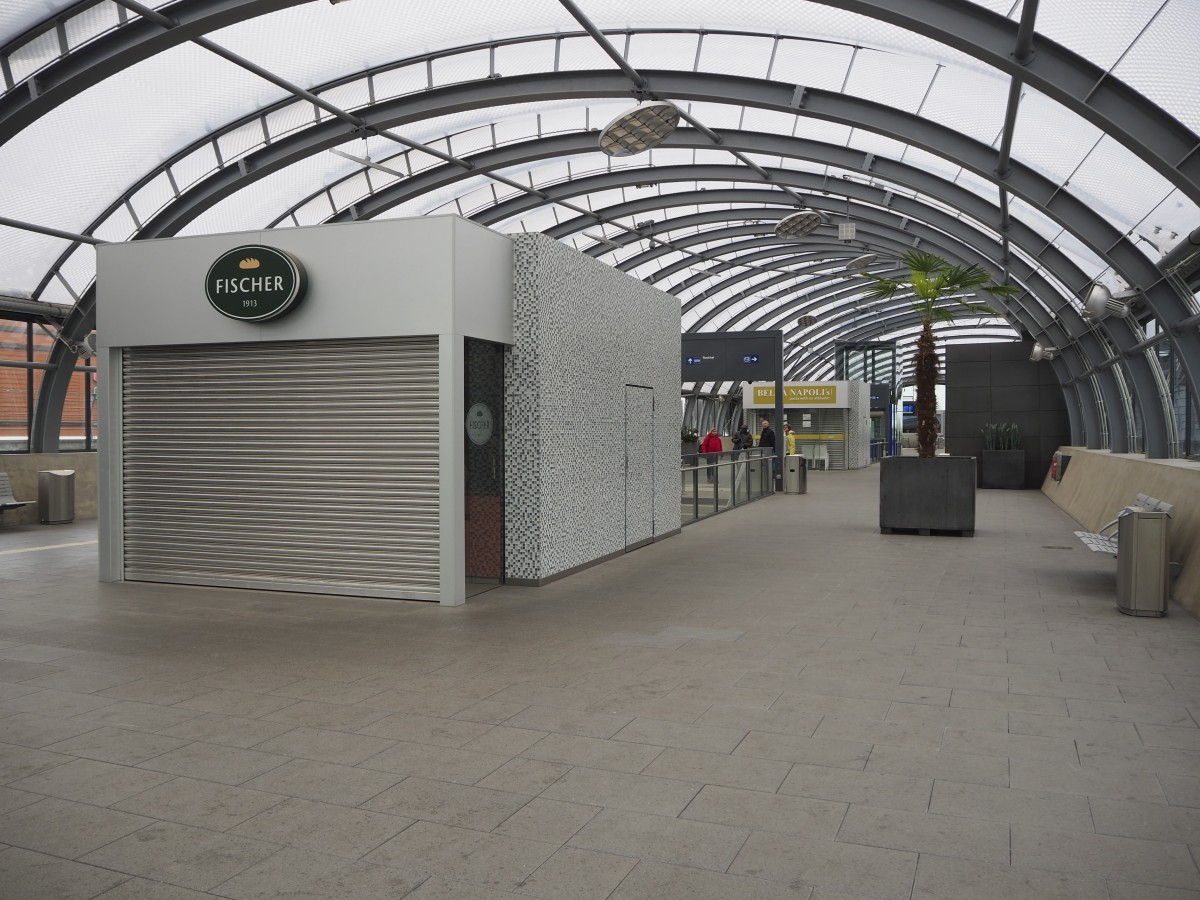 „Der Bahnhof war vom Architekten als Durchgangsbereich gedacht, deshalb zieht es hier sehr und die aktuellen Temperaturen sind keine, bei denen sich jemand gerne hier drinnen aufhält“, meint Malané. Die Tatsache, dass die vorhandenen Imbisslokale kurz nach ihrer Eröffnung aus Mangel an Kunden wieder ihre Türen geschlossen und seither nie wieder geöffnet haben, trägt vor allem an grauen Tagen wie dem gestrigen nicht zu einer lebendigen Atmosphäre bei.