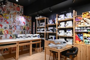 Einige ihrer Fertigkeiten geben die drei auch in Workshops weiter. Der Schwerpunkt liegt dabei auf dem Nähen: Sowohl Anfänger als auch Fortgeschrittene können hier neue Kniffe und Techniken lernen. Die Workshops finden im Laden selbst statt, in einem speziell eingerichteten Bereich gleich neben der Caféecke – umgeben von Nähmaschinen und buntem Zubehör.
