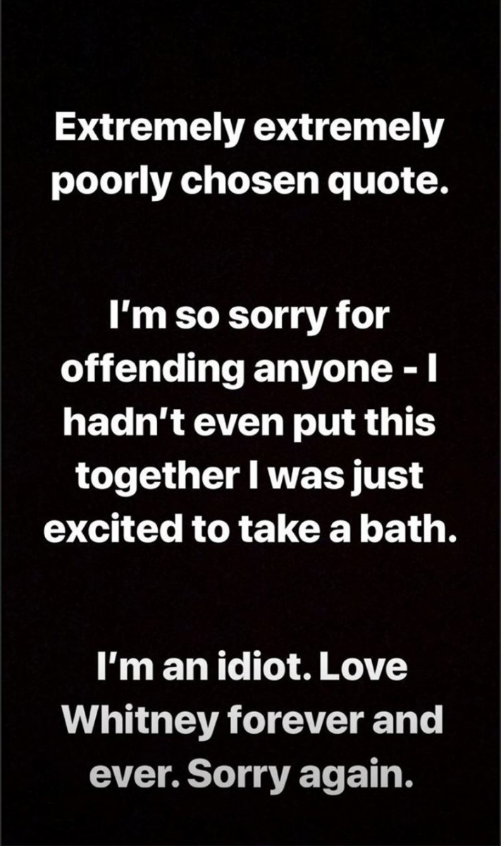 Viele Nutzer regten sich sofort über Lordes Eintrag auf. Die Sängerin löschte das Bild nach kurzer Zeit und entschuldigte sich. „Sehr, sehr schlecht ausgewähltes Zitat. Es tut mir sehr leid, wenn ich jemanden verletzt habe.“