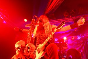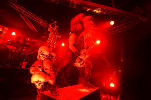 Zuerst wird das Publikum wirkungsvoll mit dem Led-Zeppelin-Song „Whole Lotta Love“ eingestimmt. Die Dramaturgie der Show startet freilich erst mit dem furiosen Song „Genocide Junkies“. Begleitet von Druckdampffontänen heulen sogleich die Instrumente eine Endzeitenergie in den Raum, stark verhexte Riffs gesellen sich hinzu und schon fliegen Wyldes Haare unaufhaltsam umher. Durch eine unmissverständliche Körpersprache zieht der muskulöse Leadgitarrist unvermeidlich alle Blicke auf sich. Mal gebärt er sich Jesus ähnlich gekreuzt, mal wird die Gitarre wie ein gewaltiges Objekt gestemmt, mal wird gemosht wie ein Besessener oder auch noch aggressive Berserker-Posen eingenommen.