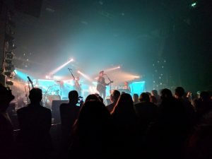 Dat Ganzt war awer en touchanten an entspaanten Owend, de Sänger war sou gutt gelaunt (den Dag drop hätten se fräi, sot hie puer mol), datt hie seng Band (an och de Public) ugestach huet: No all zweetem Lidd sinn se sech an d’Äerm gefall, sou wéi wann d’Musiker sech nach ausstoe kéinten, no 60 Nuechten an engem Tourbus. Ofgeschloss gouf – ee Gléck, vu Freed sinn ech souguer gehopst – mam Lidd „Pilgrim“ (Hard Believer), dat mat sengen dréchenen Akkorden a senge kaum 50 Wierder Text sech opbaut wéi e risegen Tuerm, deen ëmmer méi schnell no uewe schéisst. E Lidd, dat een, all Kéiers, wou een et live matkritt, am léifsten ni ophalen héiere géif.