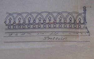 Dans ce répertoire d’objets mobiliers, à la fois identiques et monumentaux, la grille et le réverbère jouent un rôle essentiel. Toute une hiérarchie de grilles caractérise cette organisation de l’espace. Celles entourant les parcs et les squares étaient généralement placés à ras le sol et contribuaient à l’uniformisation de l’espace public. Ces galeries au dessin très économique, en usage à Luxembourg, avaient été créées par les services d’Alphand à Paris. Même les grilles destinées à protéger la base des arbres présentaient un dessin raffiné et faisaient partie de cette esthétique urbaine développée du temps d’Haussmann et exportée à grande échelle.