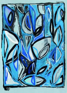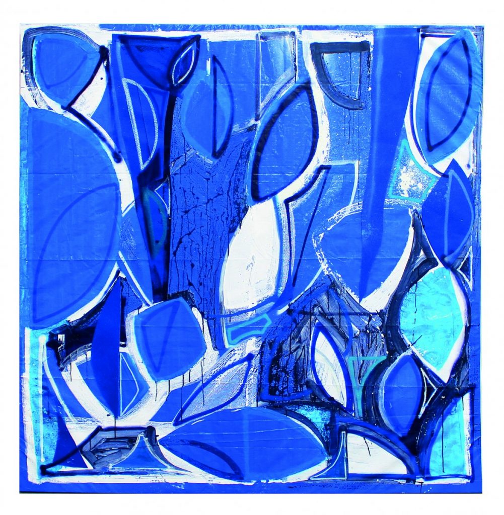 Der Bruch könnte kaum deutlicher sein: Die bedrückenden Atmosphären, die dunklen Farben, die deformiert wirkenden Figuren, die überwältigenden, fast überladenen Kompositionen, in denen oftmals Textelemente verarbeitet sind, kurzum all das, was bislang die Gemälde des 24-jährigen Malers ausgemacht hat, ist verschwunden. An ihre Stelle sind Blau und Weiß getreten, klare, abstrakte Formen, schnörkellose Kompositionen, bei denen eine gewisse Kälte spürbar ist. Und das ist durchaus gewollt.