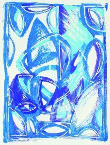 Für seine „blaue Phase“ hat er sich eigens eine blaue Textilfarbe gemischt. Die sei aber, wie er lachend anmerkt, patentfrei. Also leider (noch) kein „ihb“ („International Hübsch Blue“). Diese Farbe bildet die Grundlage für seinen neuen Arbeitsprozess. Auf die erste Farbschicht wird per Spraydose eine zweite Schicht aufgetragen, indem der Farbbehälter zum Explodieren gebracht wird. Die dritte und letzte Schicht besteht aus herkömmlicher Wandfarbe.
