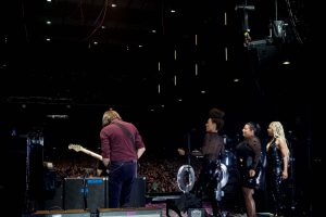 Dass The Killers bereits seit den frühen 2000er-Jahren im Showbusiness sind und dabei etliche Konzerthallen und Festivalgelände gefüllt haben, merkt man den Bandmitgliedern mit jeder einzelnen Bewegung an: Jede zusätzliche Interaktion mit dem Publikum, jede Bewegung auf der Bühne wirkt treffsicher und fest integriert in den Tourauftritt.