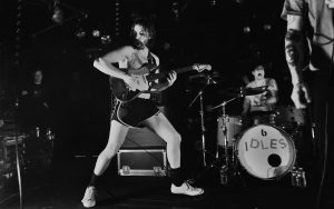 Idles aus Bristol spille wëllen, ëmmer liicht schife Post-Punk. An hiren Texter besange si Theme wéi Ofhängegkeet, Depressioun, Immigratioun an de Brexit. Op der Bühn goufen déi duerchaus eescht Themen deels a katharteschem Kaméidi, deels an der Affirmatioun vum Hedonismus opgeléist.
