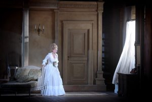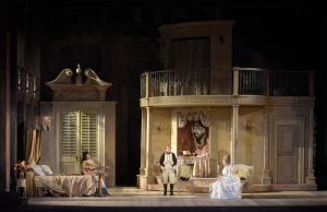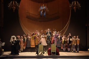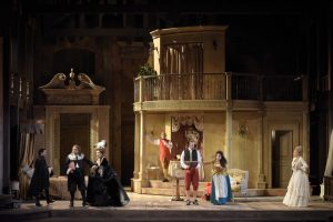 Dort spielte dann auch Rhorers Ensemble Le Cercle de l’Harmonie, was ja ein auf historischen Instrumenten spielendes Orchester ist. Da machte es dann auch Sinn, dass Gray auf eine zeitgerechte Inszenierung setzte mit Bildern, Kostümen und Bewegungen aus Mozarts Zeit. Gray hatte zusammen mit seinem Bühnenbildner Santo Loquasto ein stimmungsvolles Bühnenbild geschaffen, das schnell und flexibel für jeden Akt geändert werden konnte. Hatte man sich erst einmal an diese zeitbezogene und „altmodische“ Inszenierung gewöhnt, konnte man dann auch schnell hinter die Charaktere der verschiedenen Personen blicken. Diese hatte Gray vorzüglich und authentisch gezeichnet.