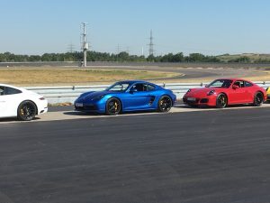 Die Workshops beim Experience Day in Aldenhoven sahen Fachvorträge zu Motor- und Fahrwerkstechnologie vor, daneben gab es einen Einblick in die Evolution von Form und Design anhand von Modellen aus den wichtigsten Etappen, in denen der 356 zum 911 wurde und der wiederum optisch mal mehr, mal weniger zurückhaltend dem jeweiligen Zeitgeist angepasst wurde. Es blieb aber nicht bei der theoretischen Einführung. Wir konnten die 911, Boxster und Cayman dann auch über einige Runden auf der Piste erfahren, Slalom- und Beschleunigungstests inklusive. Dafür sind Sportwagen wie Porsche ja schließlich da.