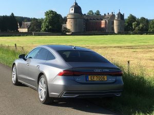 Alle relevanten Infos zur Sicherheit laufen in einem zentralen Fahrerassistenz-Steuergerät zusammen, geliefert von Kameras und Radarsensoren, Ultraschallsensoren und Laserscanner. Die Fahrmodi des „audi drive select“ variieren von „Normal“ über „Comfort“, „Auto“ und „Individual“ bis „Dynamic“, Fahrwerk, Lenkung, Drehzahlverhalten und Schaltvorgänge (Sieben-Gang-DKG7-Automatik) ändern entsprechend, wer will, kann über die Schaltwippen am Lenkrad die Musik selbst steuern. Da Oma gut aufgelegt und bestens angeschnallt war, wählte ich „Dynamic“, wobei der 3-l-V6-Turbo-Benziner auch akustisch zum Fahrerlebnis beitrug. Als Renner ist der A7 nicht konzipiert, aber ein Langweiler ist er dafür nicht, sein Antritt ist standesgemäß, seine Gelassenheit und Ruhe auf allen Straßen ebenfalls. Der A7 Sportback ist eine Luxus-Limousine in Coupé-Form zum Entspannen und Genießen.