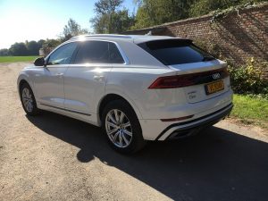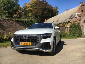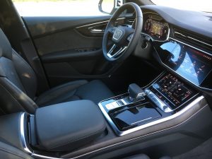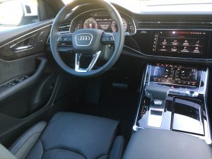 Derweil hatte meine Oma mit den Springerstiefeln ihren Spaß auf der Rückbank, die für zwei ideal ist, dann kann man die Mittellehne herausklappen, um entspannt den souveränen Reisekomfort dieser Coupé-Limousine zu genießen. Die Rückbank lässt sich um 10 cm nach vorne oder hinten verstellen, räumlich konnte sich Oma nach Herzenslust austoben. Denn um viel Platz in einem anspruchsvoll ausgestatteten Interieur mit viel Luxus geht es im Q8, der von Assistenzsystemen geradezu überschäumt und nichts vermissen lässt, was heutzutage in der Premiumklasse auf dem Speiseplan steht.