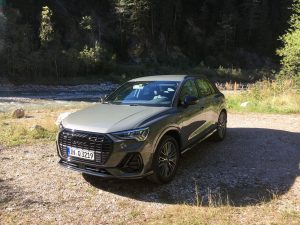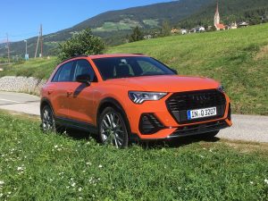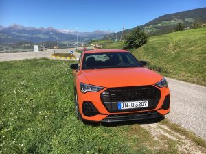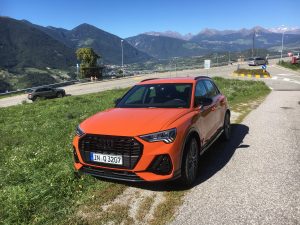 Für die Fahrvorstellung in Südtirol hatte Audi drei Motorisierungen zur Verfügung, einen Zwei-Liter-Diesel (Q3 35 TDI) mit 150 PS, einen 1,5-Liter-Benziner (Q3 35 TFSI) mit Zylinderabschaltung und ebenfalls 150 PS und einen Zwei-Liter-Benziner (Q3 45 TFSI) mit 230 PS. Letztere kamen in Blau und Pulsorange, die Diesel PS in Chronosgrau und der kleine TFSI in Florettsilber. Wir kamen in Schwarz, Rot und Grün und Oma in ihren Springerstiefeln und sie regte sich fürchterlich auf, wenn uns wieder einmal ein Wohnmobil ausbremste.