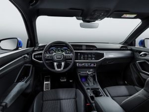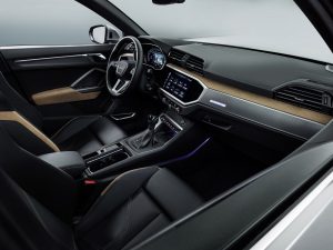 Der neue Q3 ist mit 4,48 m fast 10 cm länger als sein Vorgänger, sein Radstand wuchs um fast 8 cm, in der Breite hat er fast 2 cm zugelegt und in der Höhe hat er einen halben cm verloren. Mir gefällt die etwas kantigere Karosserieform mit den markanten Seitenstreifen, den LED-Scheinwerfern in neuem Design, die dem zackigen Grill und dem eckigen Heckabschluss eine flachere Optik und einen dynamischen Auftritt vermitteln, der weit vom Eindruck des rundlichen Vorgängers entfernt ist.