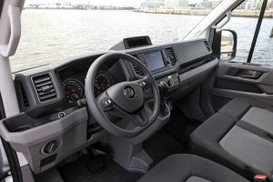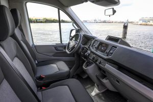 Beim e-Crafter handelt es sich um einen Hochdach-Kastenwagen, der mit seiner Höhe von 2,59 m und 1,86 m Laderaumhöhe ein maximales Ladevolumen von 10,7 Kubikmeter bietet. Sehr großzügig ist auch die Durchladebreite mit 1,38 m geworden. Die maximale Ladelänge beträgt 3,45 m.