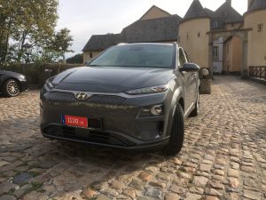 Also es muss nicht immer ein SUV sein, aber wenn man dann den E-Kona im Fahrbetrieb kennenlernt, ist einem das schon fast egal, denn das Auto ist ein Genuss zu Stadt und zu Land. Wendig, kurvenfreudig und mit einem bemerkenswerten Antritt, da ja bei einem E-Fahrzeug das gesamte Drehmoment sofort einsetzt. In der Version mit großer Batterie (64 kWh Kapazität) steht ein Drehmoment von 395 Nm zur Verfügung, genug für kraftvollen Durchzug. Und das über eine lange Distanz, denn die Autonomie beträgt 482 km laut WLTP-Testverfahren, doch sollte man sich bei strammer Fahrt auf etwas weniger gefasst machen. Doch über 400 km an einem Stück muss man erst einmal fahren, dazu bedarf es schon einer ausgedehnten Urlaubsreise mit sorgfältig geplantem Stopp zum Aufladen an einer Ladesäule.