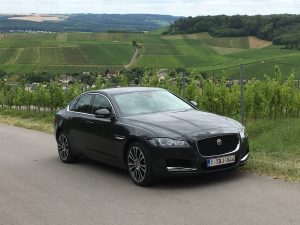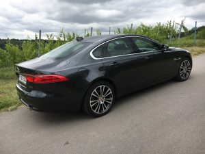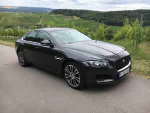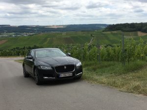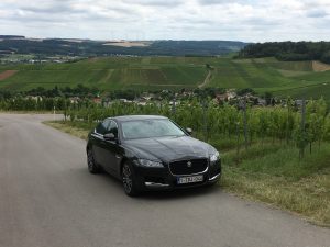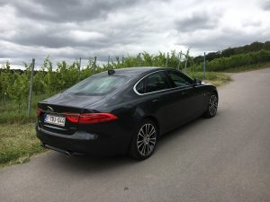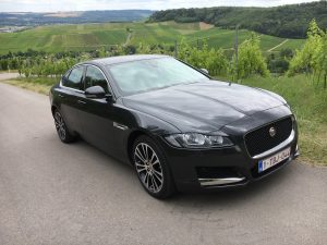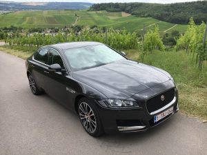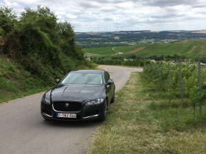 Dreiliter V6 Diesel mit Turbo, 300 PS und ein Drehmoment von 700 Nm, da darf man schon entsprechende Durchzugskraft und Ausdauer erwarten, welche dieser XF mühelos auf die Matte bringt. Letzten Februar hatte ich mit dem XF Sportbrake mit gleichem Motor einen Verbrauch von 7,7 Liter festgestellt. Diesmal sollten es 7,8 Liter sein, trotz temporeicher Autobahnfahrt. Der XF hat ein stabiles Fahrwerk und eine passgenaue Lenkung, was einem erlaubt, auch mal sportlich dort aufzutreten, wo andere Limousinen es gemütlicher angehen lassen, wobei die Achtgang-Automatik im Fahrprogramm „Dynamic“ sehr entschlossen nach oben dreht. So machte es auch in Luxemburg Spass, abseits der Autobahn und der Staus, durch die Dörfer zu segeln, an der Mosel entlang, mit Blick auf die Weinberge und die Köstlichkeiten, die dort gedeihen. So in etwa stellte ich mir das vor.