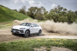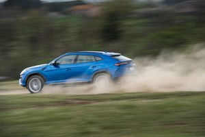 Erstes Sakrileg: Der Urus führt den ersten Turbolader in einem Lamborghini-Motor mit sich. Shocking! Aber wer im Terrain im Drehzahlkeller viel Kraft stemmen will, der braucht so etwas. Und dass er auf der Staubpiste eine gute Figur macht, davon konnten wir uns in einer hurtig zurechtgefegten Off-road-Arena neben dem Autodromo Vallelunga Piero Taruffi, etwa 30 km nördlich von Rom, überzeugen. Ich bin sicher: Jetzt, fünf Tage später, haben sich die Staubwolken noch immer nicht gelegt.