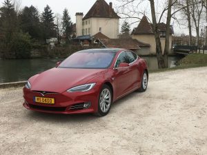 Die herausragende Qualität des Tesla: er zieht los wie ein Rennwagen, akustisch fast unhörbar, und drückt einen beim geringsten Druck aufs Pedal nachdrücklich in die Polster und zieht seines Weges, schnell und lautlos. Da moderne Radargeräte jedoch nur blitzen, was sie sehen, und nicht das, was sie hören, ist man mit dem Tesla gut beraten, die Tempoanzeige im Auge zu behalten oder den Tempomat zu benutzen, was auch hilft, um Energie zu sparen. Viele Leute empfinden Geschwindigkeit nur mit entsprechendem Geräuschpegel, nur Rolls-Royce-Fahrer können sich in den Gemütszustand eines Tesla-Fahrers hineinversetzen, der plötzlich merkt, dass er längst bei 200 km/h angekommen ist.