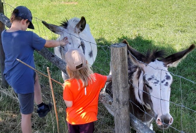 Von all diesen Eindrücken beschwingt, laufen wir das letzte Stück des inzwischen asphaltierten Weges vorbei an einem großen Bauernhof, bis wir wieder am Ausgangspunkt unserer Tour am Camping du Nord ankommen. Rund zwei Wochen später lautet die Frage in der Familienrunde: „Beendet den Satz: Wandern mit Kindern ist …?“ – „riesig anstrengend“, so mein neunjähriger Sohn prompt. „Aber schön, im Wald zu spielen und Esel zu streicheln“, ergänzt die Sechsjährige mit einem verträumten Lächeln.