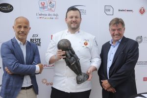 16 Kilogramm schwer: Morgan Gromy, Alain Hostert und Ghislain Ludwig (v.l.n.r.) mit der Trophäe des „Culinary World Cup“