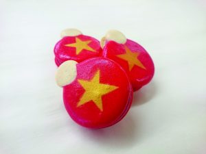 Stilecht in einer Form einer Christbaumkugel werden die „Macarons de Noël“ präsentiert. Im klassischen Rot gehalten, mit einer Himbeer-Ganache, zieren filigrane Zeichnungen in Gold diese Weihnachts-Macarons. Wer sie kosten möchte, muss sich beeilen – es handelt sich um eine limitierte Edition (Preis: 2 Euro/Stück).