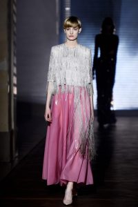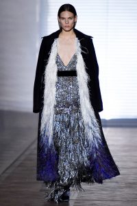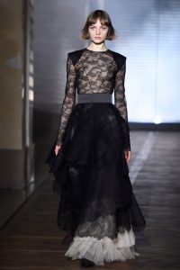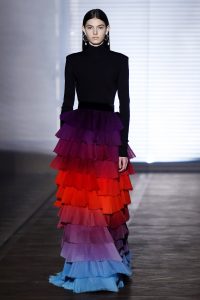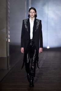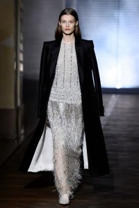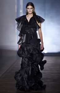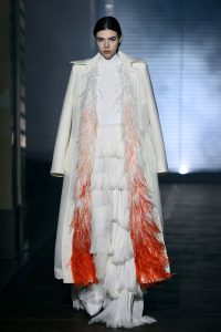 Die Schnitte ultraschicker schwarzer Anzüge mit weiten Hosen wirkten architektonisch durchdacht – wie bei Kellers Vorgänger Riccardo Tisci. Ihr gelang es jedoch dabei, Stringenz zu vermitteln. Das fehlte dem Haus zuletzt. Gerüschte Stufenröcke in Leuchtfarben kombinierte sie zu schlichten schwarzen Oberteilen, feine weiße Spitze zum Shirt und eine wunderbar bestickte Robe zum Regenmantel in Blassorange. Mit der 47-Jährigen steht zum ersten Mal eine Frau an der kreativen Spitze des Modehauses.