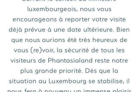 Die Empörung in den sozialen Medien ist groß – sogar an der Echtheit des ersten Fotos wurde gezweifelt. Doch die E-Mail des „Phantasialand“ ist nicht gefälscht. Auch auf der Internetseite des Freizeitparks wird die Information (in französischer Sprache) wiederholt: „Wir bitten Luxemburger Gäste, ihre Anreise auf ein späteres Datum zu verschieben. Wir wären sehr glücklich darüber gewesen, sie erneut begrüßen zu können, aber die Sicherheit aller unserer Gäste steht für uns an oberster Stelle.“