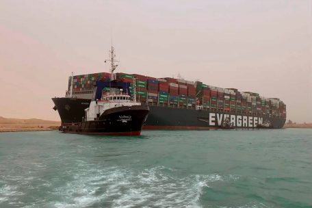 Handelsroute / Containerschiff läuft in Suezkanal auf Grund – Fahrwasser in beide Richtungen blockiert