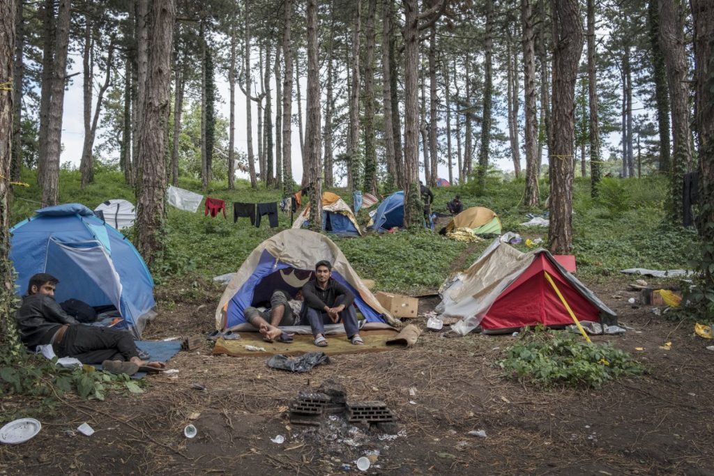 Bosnien-Herzegowina, Bihac: Migranten sitzen vor ihren Zelten im Wald. Foto: Danilo Balducci/ZUMA Wire/dpa