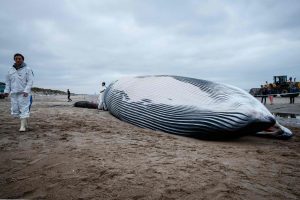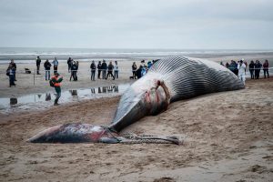 Ein seltener und trauriger Anblick musste sich belgischen Strandbesuchern am Donnerstagmorgen geboten haben: Ein 18 Meter langer Finnwal strandete am Donnerstag an der belgischen Küste in der Nähe des Ferienortes De Haan.