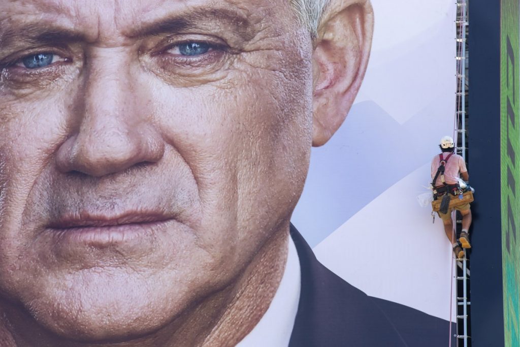 NETANJAHUS WICHTIGSTER HERAUSFORDERER: Ex-Militärchef Benny Gantz (Foto, auf dem Plakat) könnte den seit zehn Jahren durchgängig amtierenden Netanjahu in Bedrängnis bringen. Gantz‘ Bündnis der Mitte, Blau-Weiß, lag in den meisten Umfragen gleichauf mit Netanjahus Likud. Denkbar ist demnach allerdings nur eine rechts-religiöse Regierung unter Netanjahu oder eine große Koalition mit Likud und Blau-Weiß. Unklar ist allerdings, wer dabei den Ministerpräsidenten stellen würde.