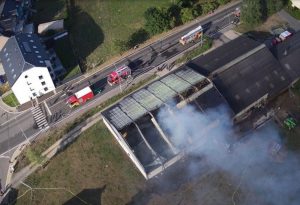Der Brand einer Scheune in Roedt (Gemeinde Waldbredimus) hat die Einsatzkräfte des CGDIS am Freitagnachmittag (8.7.) gefordert. „Aufgrund der Meldung wurde sofort eine größere Anzahl an Einsatzkräften alarmiert“, heißt es in einer Mitteilung des Rettungskorps. Vor Ort mussten die zuerst eintreffenden Einsatzkräfte feststellten, dass sich die Scheune im „Vollbrand“ befand – und das Übergreifen der Flammen auf eine angrenzende Scheune verhindert werden musste.