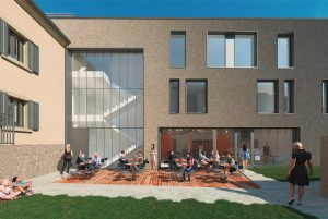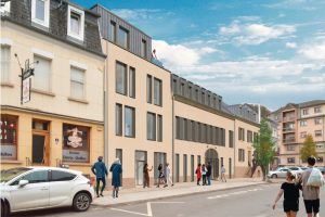 Projekt Nummer zwei ist die Renovierung des Hauses „A Kassen“, ebenfalls von allen Parteien im Gemeinderat mitgetragen. Der weniger Ortskundige erkennt die Lage am Haus mit dem gigantischen Konterfei des Schifflinger Radprofis Ben Gastauer. Für 11,4 Millionen Euro entstehen hier neuer Wohnraum, vier Arztpraxen, Geschäftsräume und Vereinslokale. Auch ein Restaurant mitsamt Innenhof ist vorgesehen.