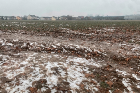 Das Eis macht sich nicht nur auf den Straßen bemerkbar. Dieser Acker am Rand von Luxemburg-Bonneweg ist ebenfalls zugefroren.