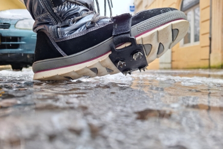 In Ländern, in denen es oft Glatteis gibt, haben die Leute spezielle Bänder griffbereit: Anti-Rutsch-Spikes für die Schuhe. Das probiert diese Leserin heute auch in Esch aus.