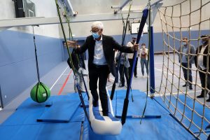 Gebaut wurde das Gerüst von der Moma Schräinerei. Das Unternehmen hat sich auf Bewegungsräume in „Maisons relais“ spezialisiert und ist in Luxemburg exklusiver Partner von Ullewaeh, dem Vertreiber des Flex-Motorikzentrums. Während Bürgermeister Georges Mischo die diversen Schaukel- und Balance-Möglichkeiten des Gerüstes ausgiebig testet, erklärt Guy Masselter, Geschäftsführer von Moma, dass die Schwingung der verschiedenen Geräte individuell eingestellt werden kann. Die Lehrer der Grundschule bekämen eine spezielle Ausbildung, um die innovative Neuheit ideal und sicher nutzen zu können.