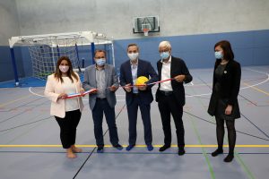 Im Schulhof wurden ebenfalls Gerüste auf- und Trampoline in den Boden eingebaut, mit denen die Motorik der Kinder gefördert werden soll. Der Hof war bereits im Dezember 2019 fertiggestellt worden und hat die Gemeinde 650.000 Euro gekostet. Insgesamt schlug der Neubau samt Außenbereich mit 7,3 Millionen Euro zu Buche. „Wir sind sogar ein klein wenig unter dem ursprünglichen Kostenvoranschlag geblieben“, sagt Bautenschöffe Martin Kox. Nach zwei Monaten, in denen Eschs Schulen leer standen, freut sich Schulschöffin Mandy Ragni umso mehr, zu sehen, wie viel Spaß die Kinder beim Springen auf den Trampolinen im Schulhof haben.