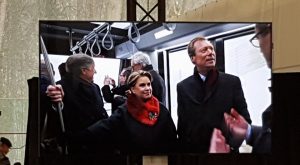 Das Foto des Tages kommt von unserem Fotografen Alain Rischard. Als der Großherzog für die Eröffnung des Howalder Bahnhofs an der Leine des Banners zog, flatterte dieser der Großherzogin Maria-Theresa auf den Kopf.