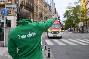 Ernest und Yago laufen für ihren Rundgang aus der rue de Strasbourg in die Avenue de la Liberté und überqueren diese in Richtung Avenue de la Gare. Die beiden Streetworker grüßen in ihren giftgrünen Fleece-Jacken vorbeigehende Passanten. Ernest und Yago grüßen dabei Geschäftsleute, Passanten und Obdachlose gleichermaßen. Als ein kleines Kind einen Kinderwagen scheinbar ohne erwachsene Begleitung an uns vorbeidrückt, gleitet der Blick von Ernest sofort den Bürgersteig entlang, bis er die Mutter etwas weiter erspähen kann. Eine kurze Rückversicherung, dass es ihr Sohn ist, der an uns vorbeigelaufen ist, und weiter geht die Runde. „Diese kleineren Interaktionen gehören auf unseren täglichen Runden dazu“, sagt Ernest. Es komme öfters vor, dass sie kleinere Kinder vor den Läden antreffen würden, die auf ihre Eltern warten würden. „Dann warten wir eben, bis die Mutter rauskommt und das Kind wieder in sichern Händen ist“, sagt Ernest. Diese nachbarschaftlichen Dienste würden genau so zu ihrem Job gehören wie ihre regulären Aufgaben.