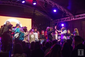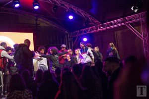 Während auf der Open-Air-Bühne ohne Instrumente performt wurde, gaben auf der „Klub Stage“ in der „Rotonde zwei“ Rock-Melodien und Metal-Riffs den Ton an. „Wir sind vier Freunde, die sich aus der Schule kennen und sich ursprünglich zu sogenannten Jam Sessions trafen“, erklären die Musiker von Dessy Mesk.