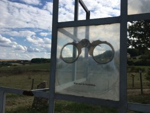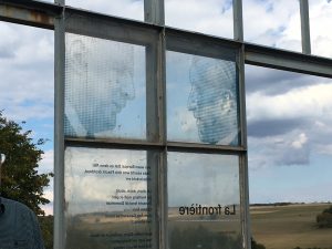 Die beiden Staatsmänner legen 1962 den Grundstein für die deutsch-französische Freundschaft in der Kathedrale von Reims. Schmitt, der Ortsvorsteher des geteilten Dorfes, hat sie verewigt. Auf den „Grenzblickfenstern“, die er initiiert, schauen sich ihre Silhouetten in die Augen. Als wollten sie erinnern und gleichzeitig mahnen, die europäische Idee nicht aus den Augen zu verlieren. Egal, was kommt.