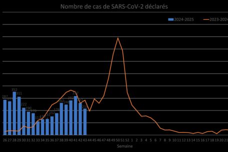 Dem wöchentlichen Rückblick über die Entwicklung der wichtigsten akuten Atemwegsinfektionen des Gesundheitsministeriums zufolge sank die Zahl der SARS-CoV-2-positiven Fälle in Woche 43 (21. bis 27. Oktober) von 261 auf 215. Dies entspreche einem Rückgang von 18 Prozent im Vergleich zur vorherigen Woche. Bei der im Wasser nachgewiesenen Viruskonzentration gebe es jedoch einen leichten Anstieg. Im September sei weiterhin die KP.3-Variante vorherrschend gewesen.