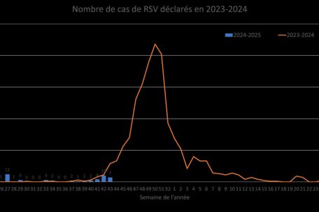 Beim Respiratorischen Synzytialvirus (RSV) sei ein leichter Rückgang verzeichnet worden. Während es in der letzten Woche noch zehn Fälle waren, seien es nun sieben.