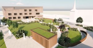Sobald der Neubau fertig ist, ziehen die Beamten um und das alte Gebäude wird abgerissen. Es weicht dem neuen Dorfplatz mit einem kleinen Park. Unterirdisch entsteht ein Parkhaus mit 49 Plätzen. Neudeutsch würde man das Ganze wahrscheinlich public open space nennen. Egal wie man es nennt, der Durchgangsort Frisingen hat dann zum ersten Mal seit Jahrzehnten einen richtigen Dorfkern.
