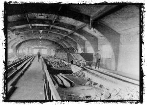 Rund um diesen hochmodernen Hochofen Nr. V konnten die Nebenanlagen nicht in einem veralteten Zustand bleiben. Früher oder später musste ein neues, modernes Stahlbeton-Eisenerzbunkersystem die alten hölzernen Erzbunker ersetzen, die bisher im Einsatz gewesen waren. Die traditionellen Erzanlagen, die die Luxemburger „Keeseminnen“ und die Italiener „Cassemine“ nannten, waren oft einfache Holzbuden, in denen das Erz gelagert wurde. Die meiste Zeit waren diese Buden mit einem Wellblechdach überdacht. Der Begriff „Keeseminnen“ hat sich bis heute erhalten.